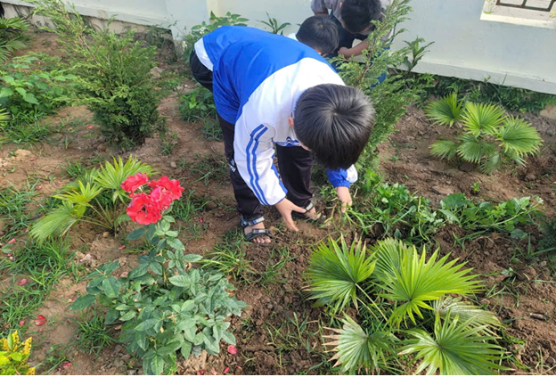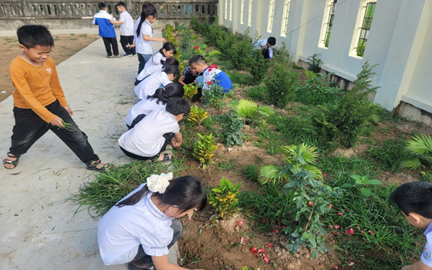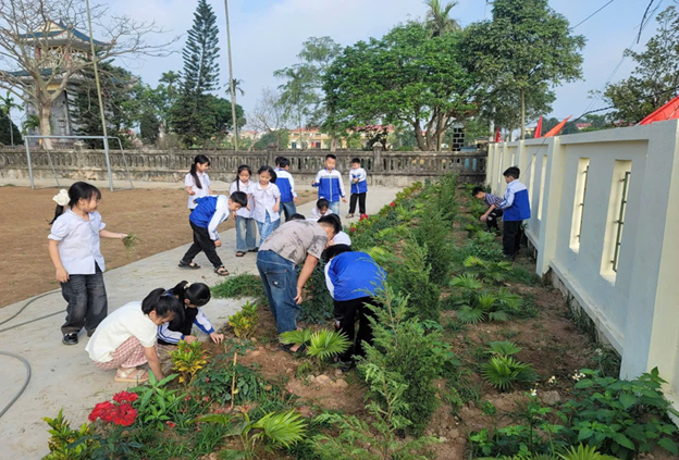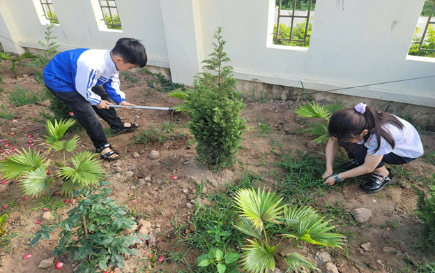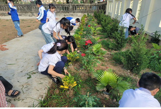 Trồng mới được 19 cây bóng mát, làm cỏ, trồng bổ sung và chăm sóc cây hoa trong khuôn viên trường.